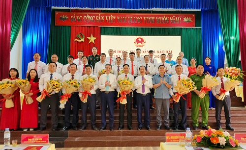 Đồng chí Vũ Minh Hiếu ( bên trái) tặng hoa chúc mừng ông Dương Công Định được bầu làm Chủ tịch HĐND xã Bảo Đài